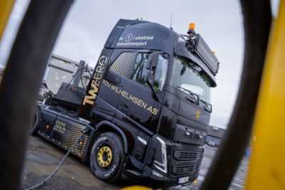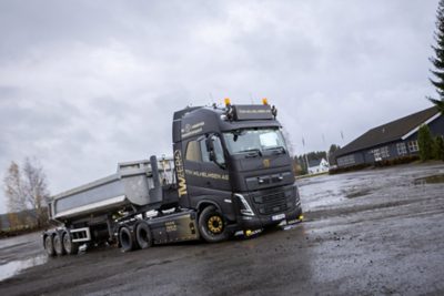 Patrick Mostue kjører rundt i en helt spesiell Volvo FH Electric, en elektrisk lastebil som både vekker oppsikt og viser framtiden til tungtransporten. Med sort matt lakk, rockestjerne-design og Volvo FH komfort, er den et skikkelig blikkfang.