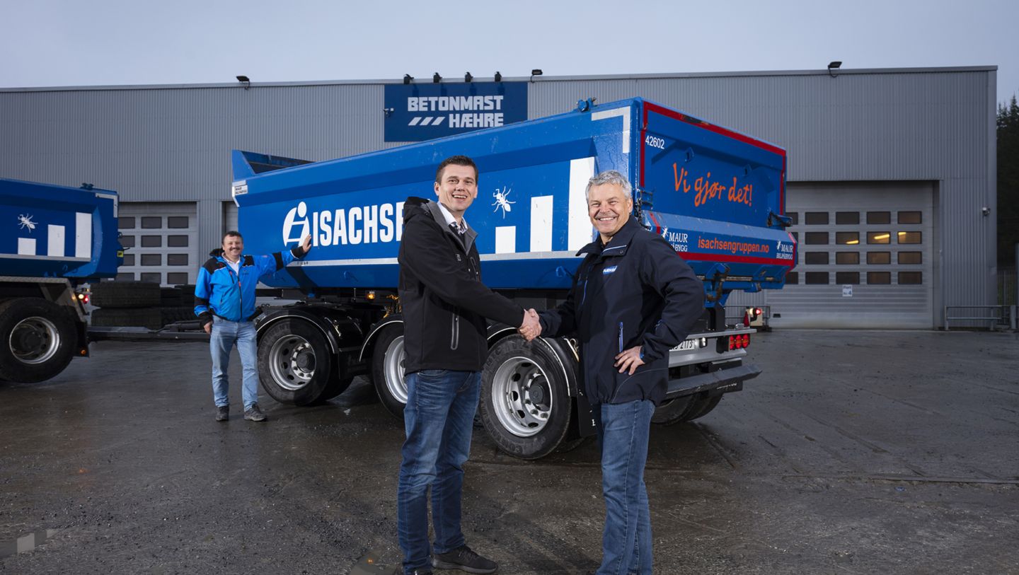 - Dette må være den største avtale inngått for levering av Volvo anleggslastebiler i Norge og det er en stor glede å ha fått være med på denne ordren. Spesielt fordi jeg har solgt lastebiler til Hæhre og Isachsen over en lang tid, sier selger i Volmax Kongsberg, Leif Ole Løvås.