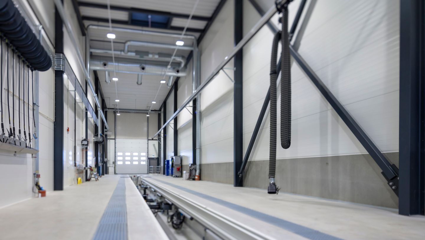Portene blir fjernstyrt slik at mekanikerne kan styre porten fra kjøretøyet som skal inn i ett av verkstedløpene. De seks hovedløpene har tilgang til en stor traverskran for løft av tunge komponenter.
