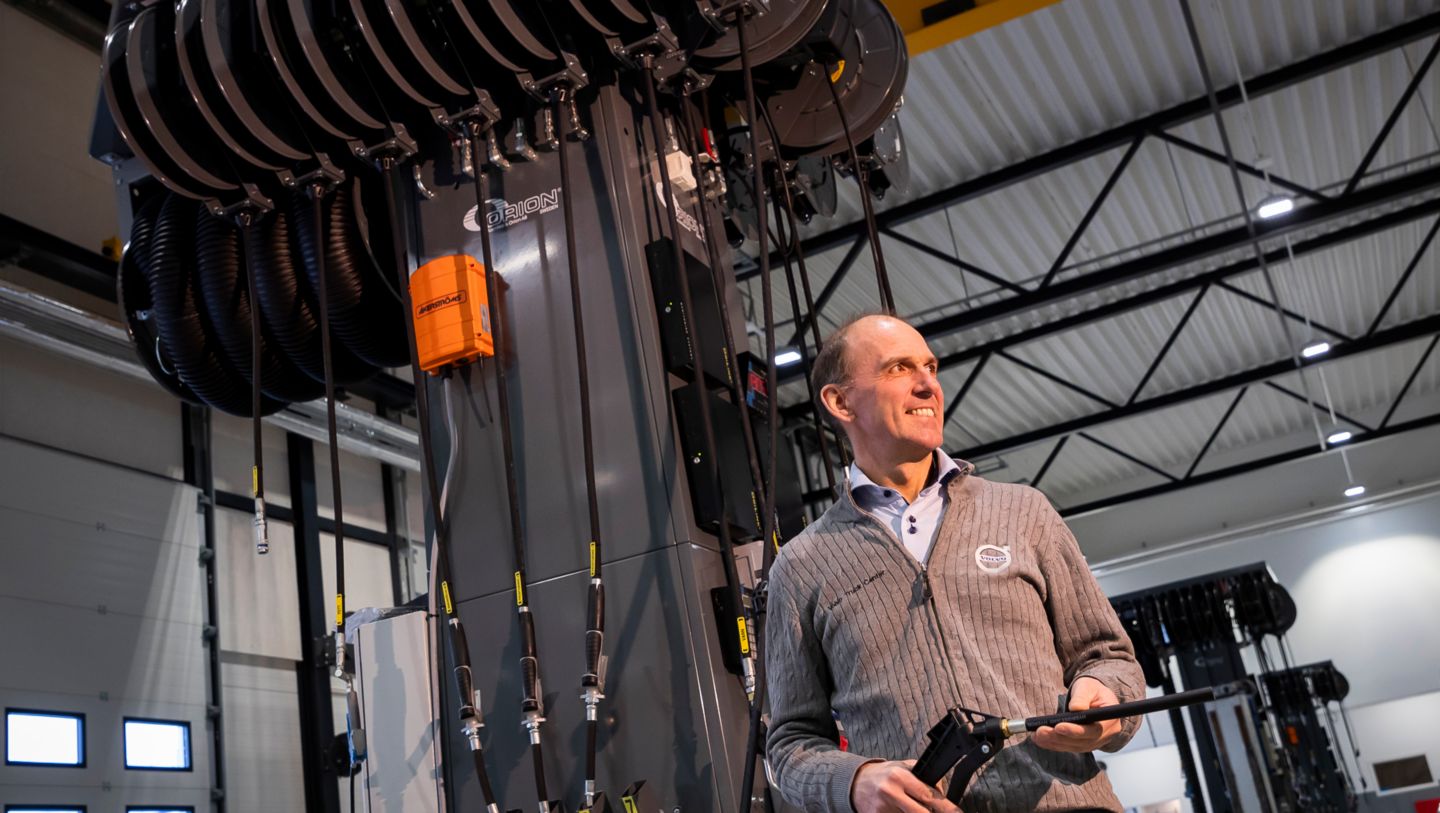 Alle væsker som er nødvendige i et tungbilverksted er lagt i rør i gulvet og fylles fra tårn som er tilgjengelige ved hver arbeidsplass. Her er både hydraulikkvæske, frostvæske i to kvaliteter og en rekke oljekvaliteter, fett og luft samt vann tilgjengelig.