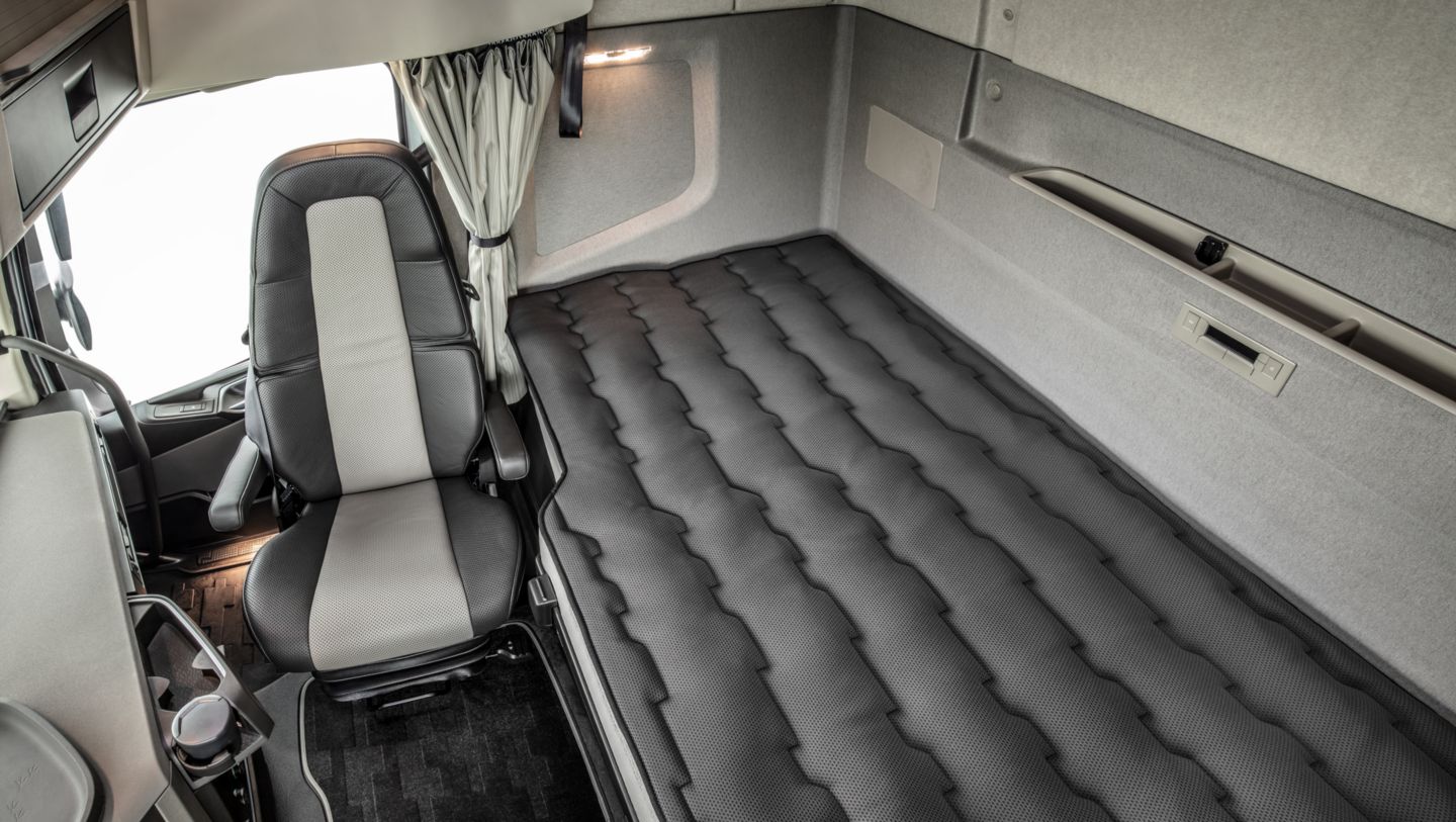 For å sikre at sjåføren får en god natts søvn, har XXL-førerhuset en av de største køyene i bransjen. Køyen er 13 cm lengre og 25 cm bredere enn køyen i det vanlige FH-førerhuset, noe som gir sjåføren massevis av ekstra frihøyde og plass til å strekke seg. Den nye madrassen er også utviklet med S-Touch-teknologi, som innebærer at det er plassert en polyeterskumpute på hver enkelt fjær.